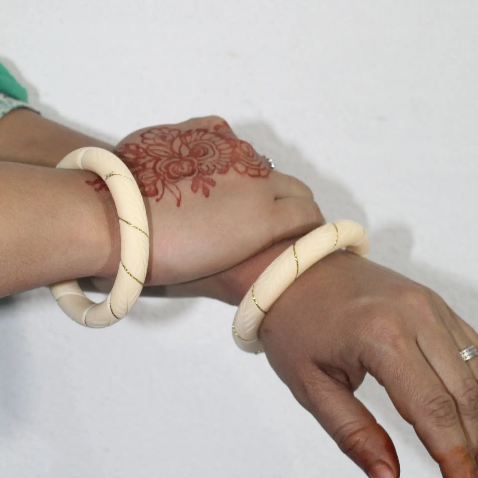 Elegant Green Transparent Bangles with Gold Accents Stone
