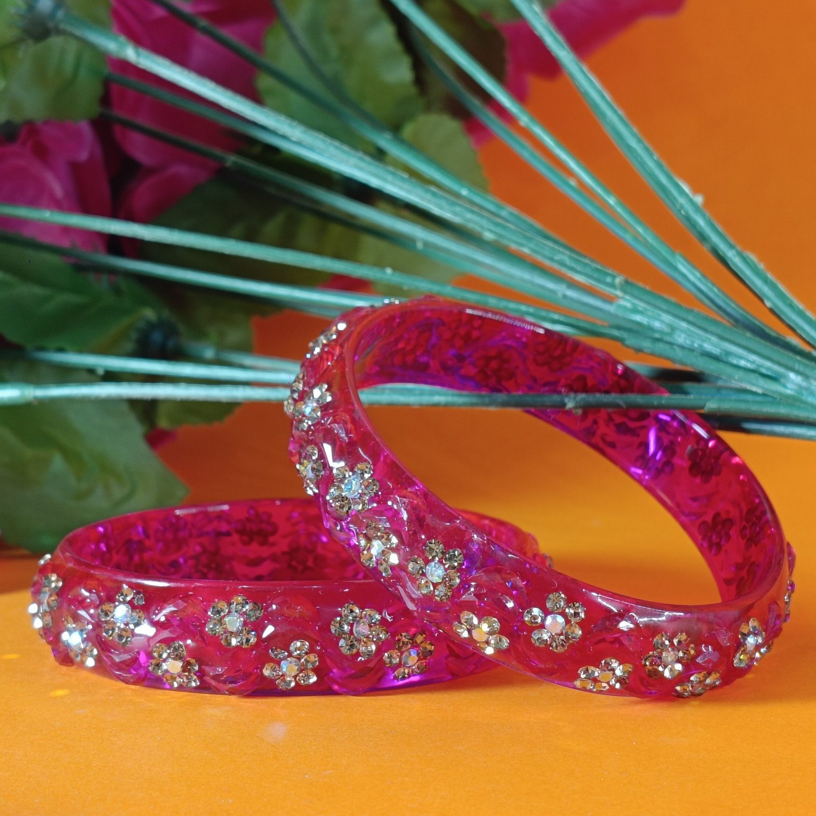 Glamorous Hot Pink Floral Bangles – Set of 2