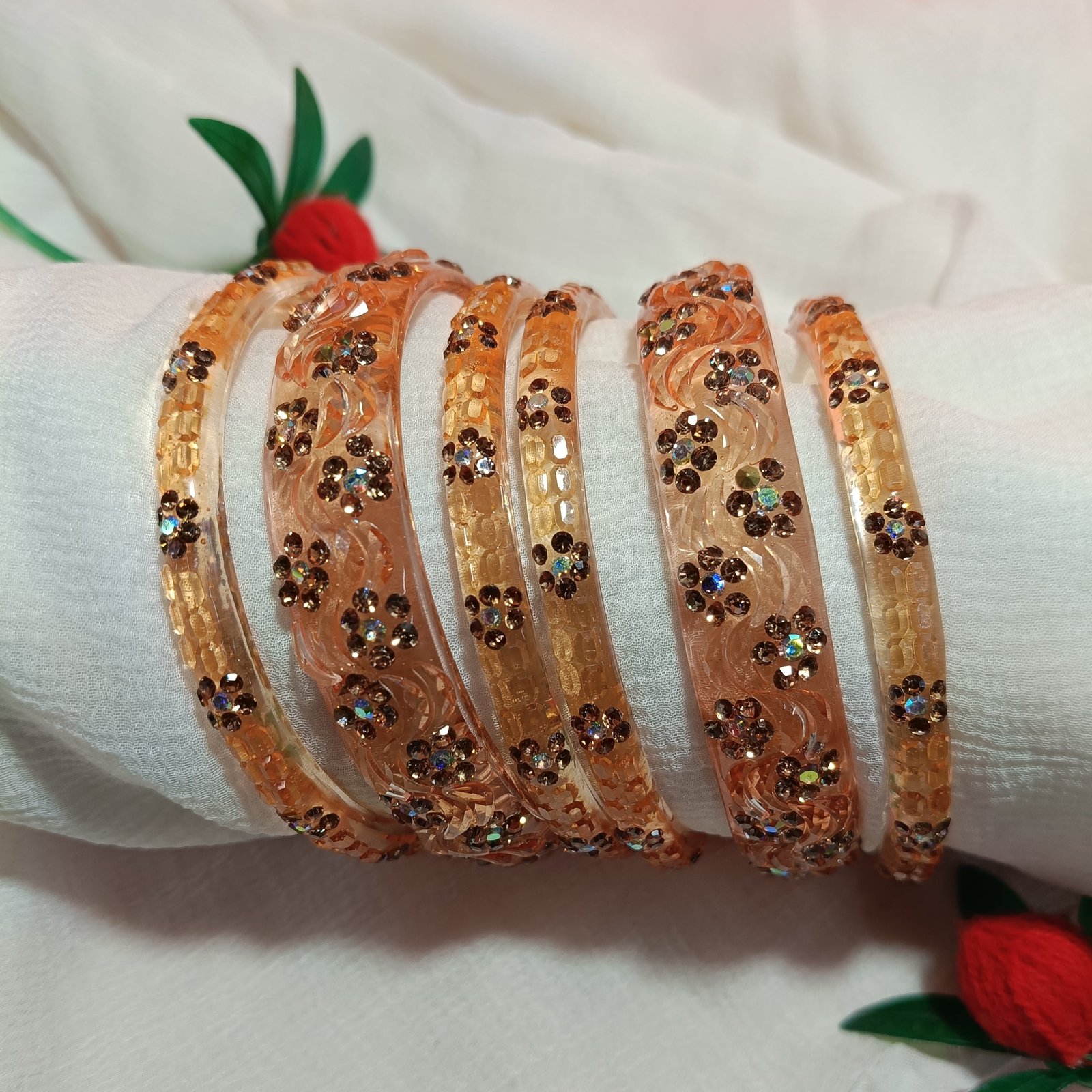 Golden Amber & Peach Floral Stone 🌸Transparent Bangle Set of 2+4